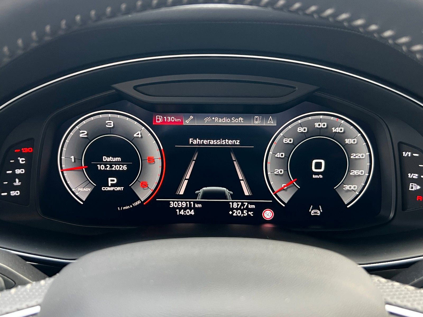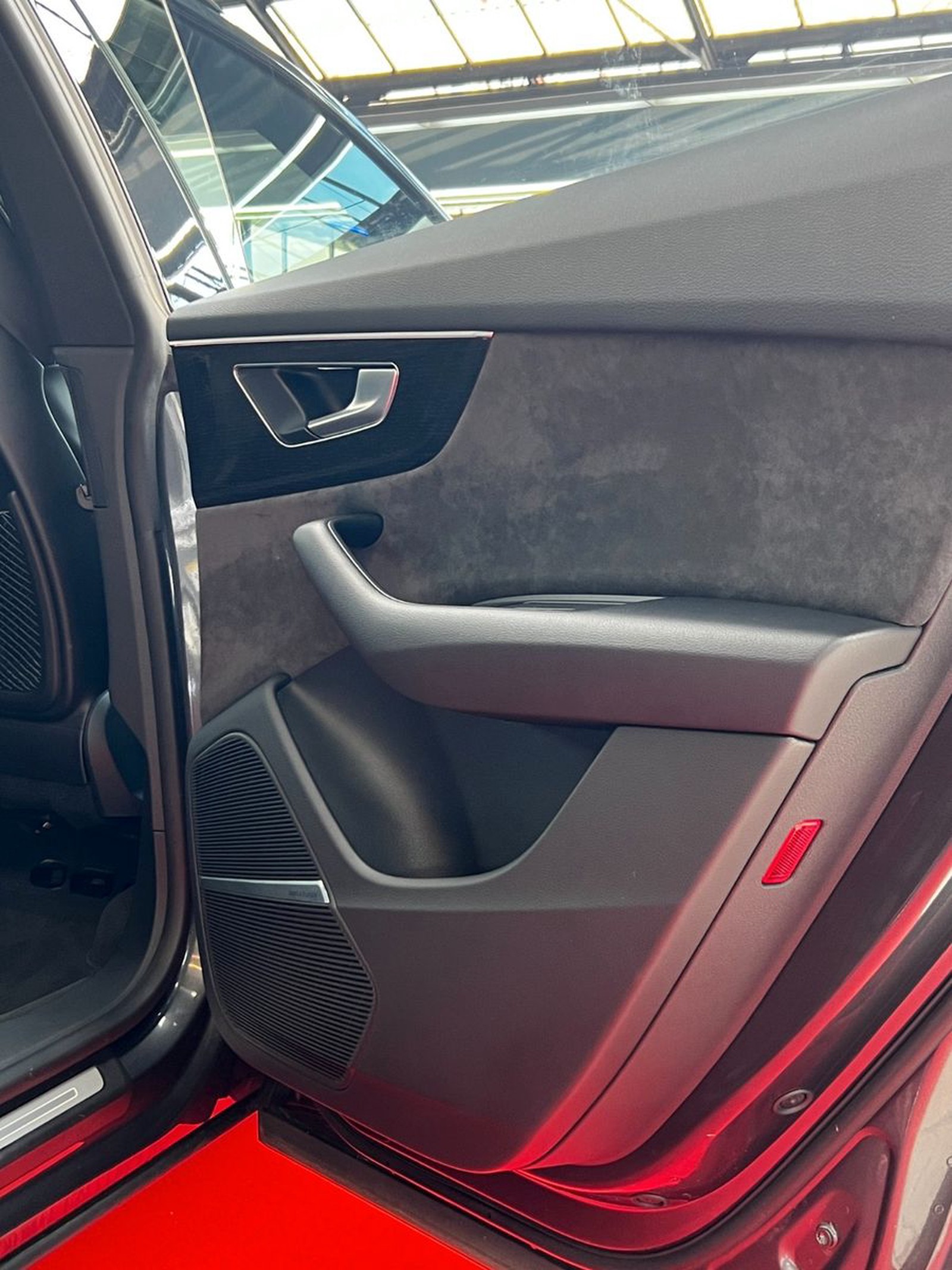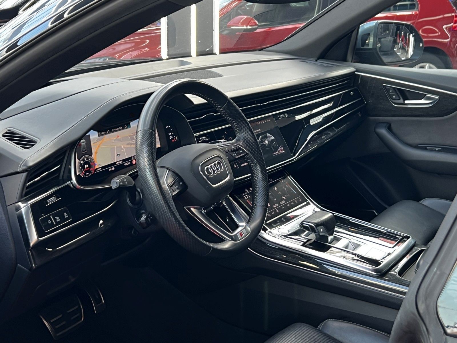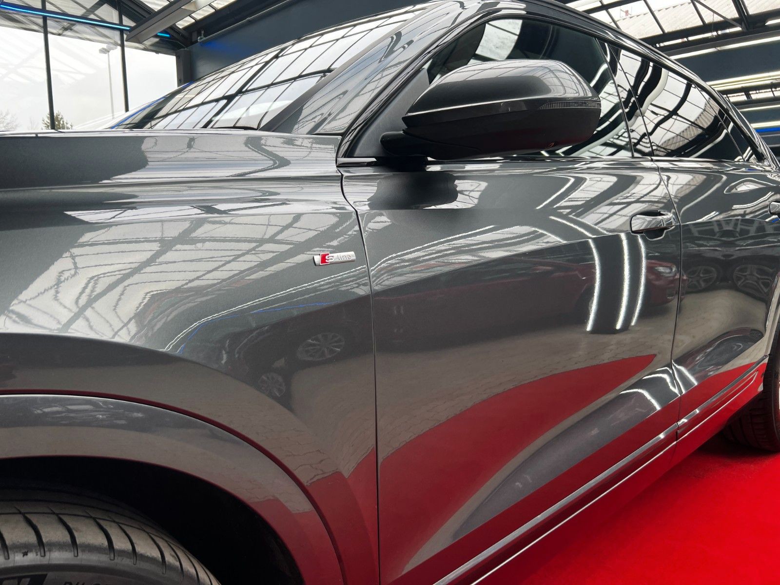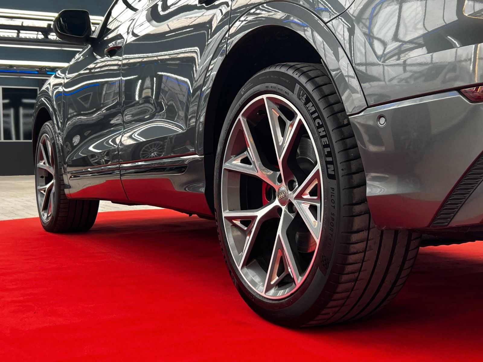 Akustikglas Türscheiben seitlich, Allradlenkung, Assistenz-Paket Stadt, Assistenz-Paket Tour, Ausstattungs-Paket: S line Selection, Ausstattungs-Paket: Technology Selection, Außenspiegel elektr. verstell-, heiz- und anklappbar, mit Abblendautomatik und Memory, Bremssättel Rot lackiert, Dachhimmel Stoff, schwarz, Diebstahlsicherung für Räder (Felgenschlösser), Fahrassistenz-System: Verkehrszeichenerkennung, Fahrwerk (adaptive air suspension), Frontscheibe Klimakomfort / Akustikglas, HD Matrix-LED-Scheinwerfer, Individualkontursitze vorn, Kamerasystem Umgebungsansicht (Top View), Klimaautomatik 4-Zonen, Kombiinstrument digital (virtual cockpit plus), Komfortschlüssel mit sensorgesteuerter Heckklappenentriegelung und Diebstahl-Warnanlage inkl. (öffnen + schliessen), Kontur / Ambientebeleuchtungs-Paket (plus), Kopfstützen variabel verstellbar, LM-Felgen 10x22 (5-V-Speichen, Stern-Design, Anthrazit-Schwarz glänzend, glanzgedreht), Optik-Paket schwarz, Panoramadach vorn elektrisch, hinten fest, Rücksitzlehne geteilt/klappbar, verschiebbar (40:20:40), Sitze vorn elektr. verstellbar (mit Memory), Sonderlackierung Daytonagrau Perleffekt, Sound-System Bang & Olufsen, Standheizung, Verglasung hinten abgedunkelt (Privacyverglasung)