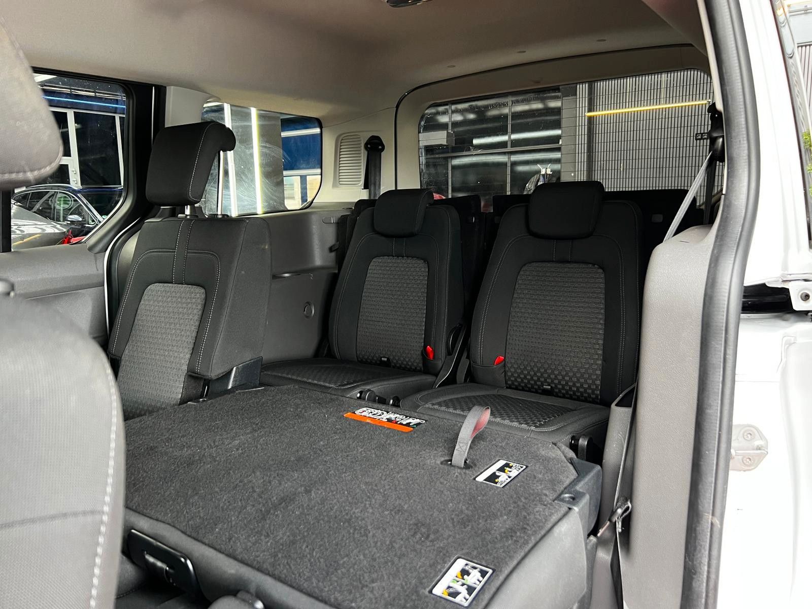 2.Sitzreihe mit Sitzbank, 3. Bremsleuchte, Ablage im Dachhimmel Fahrerhaus, Antischlupfregelung (ASR), Außenspiegel elektr. verstell- und heizbar, Batterie 60 Ah, Bord-/Verbrauchscomputer, Dimmer Instrumentenbeleuchtung, Elektr. Bremskraftverteilung (EBD), Fahrassistenz-System: Bergabfahr-Assistent, Fahrassistenz-System: Berganfahr-Assistent (Hill-Holder), Fahrassistenz-System: Pre-Collision-System, Fenster elektr. betätigt, in Schiebetür links, Fenster elektr. betätigt, in Schiebetür rechts, Fensterheber elektrisch vorn + hinten, Gepäckraumabdeckung / Rollo, Getränkehalter vorn, Heckklappe verglast, Innenraumfilter: Staub- und Pollenfilter, Intelligent Protection System (IPS), Intelligenter Geschwindigkeits-Begrenzer, Karosserie: 5-türig, Lenksäule (Lenkrad) höhen-/längsverstellbar, Leseleuchte vorn, Leseleuchten im Fond, Mittelkonsole, Modellpflege, Motor 1,5 Ltr. - 74 kW EcoBlue TDCi KAT, Radstand 3062 mm, Reifendruck-Kontrollsystem, Schadstoffarm nach Abgasnorm Euro 6d-TEMP, Schaltpunktanzeige, Schiebetüren beidseitig, Seitenschutzleisten, Sitzlehnen vorn klappbar, Start/Stop-Anlage, Starter-Paket, Staufach auf Armaturentafel
